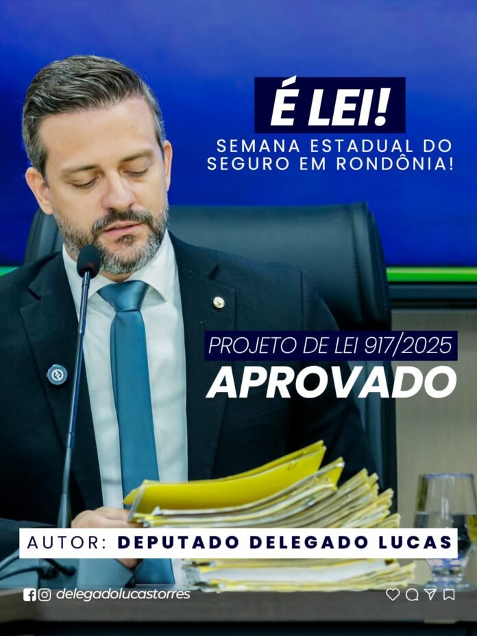 Foi aprovado na Assembleia Legislativa o Projeto de Lei nº 917/2025, de minha autoria, que institui a Semana Estadual do Seguro em Rondônia, a ser realizada todos os anos, na segunda semana de outubro.
